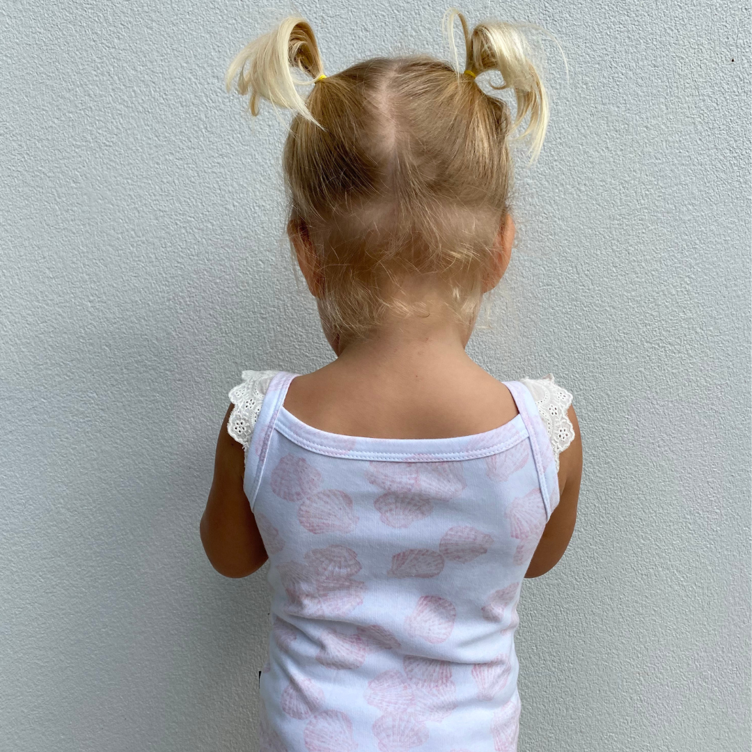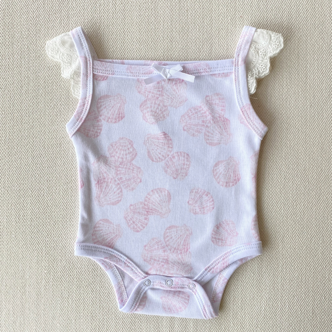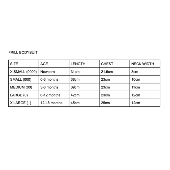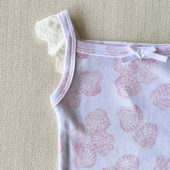 A brand new addition to our sleep basic collection. Made from super soft cotton, these items are designed for ultimate comfort and cuteness. We've added a lace frill to this bodysuit which is beautiful and timeless.