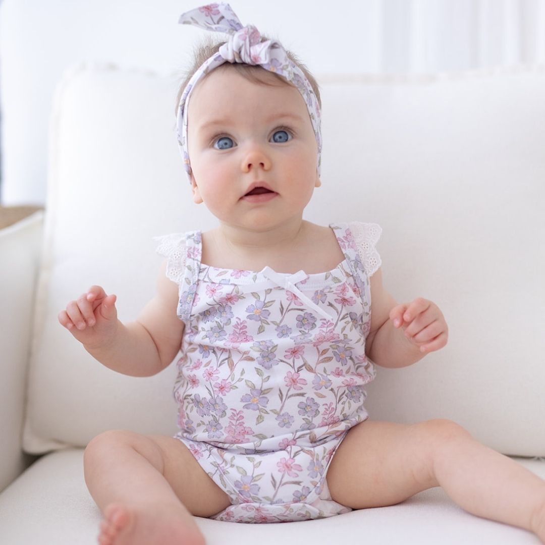 To complete the look with our gorgeous rompers, this design is also available in a matching headband or beanie.