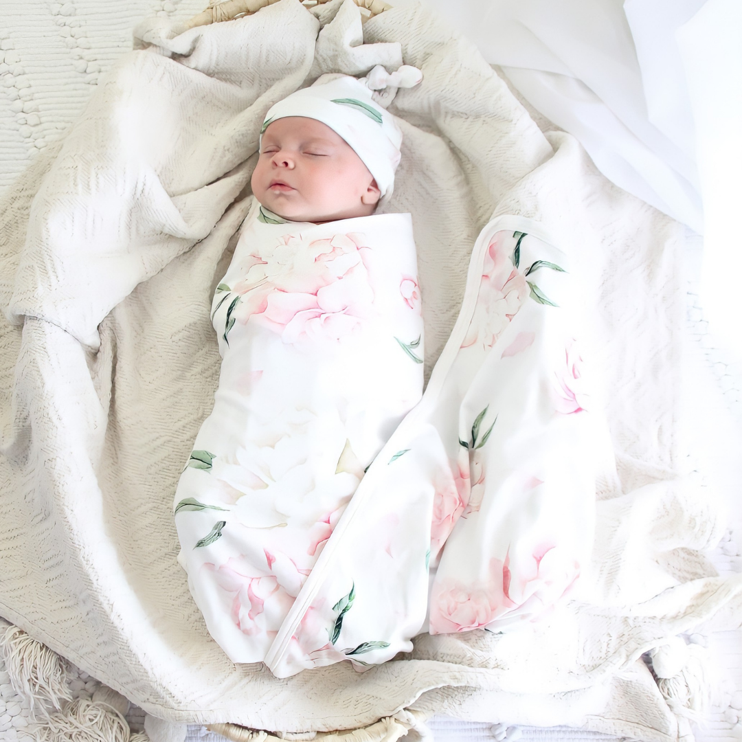 Jersey Swaddle & Beanie | Pretty Peony